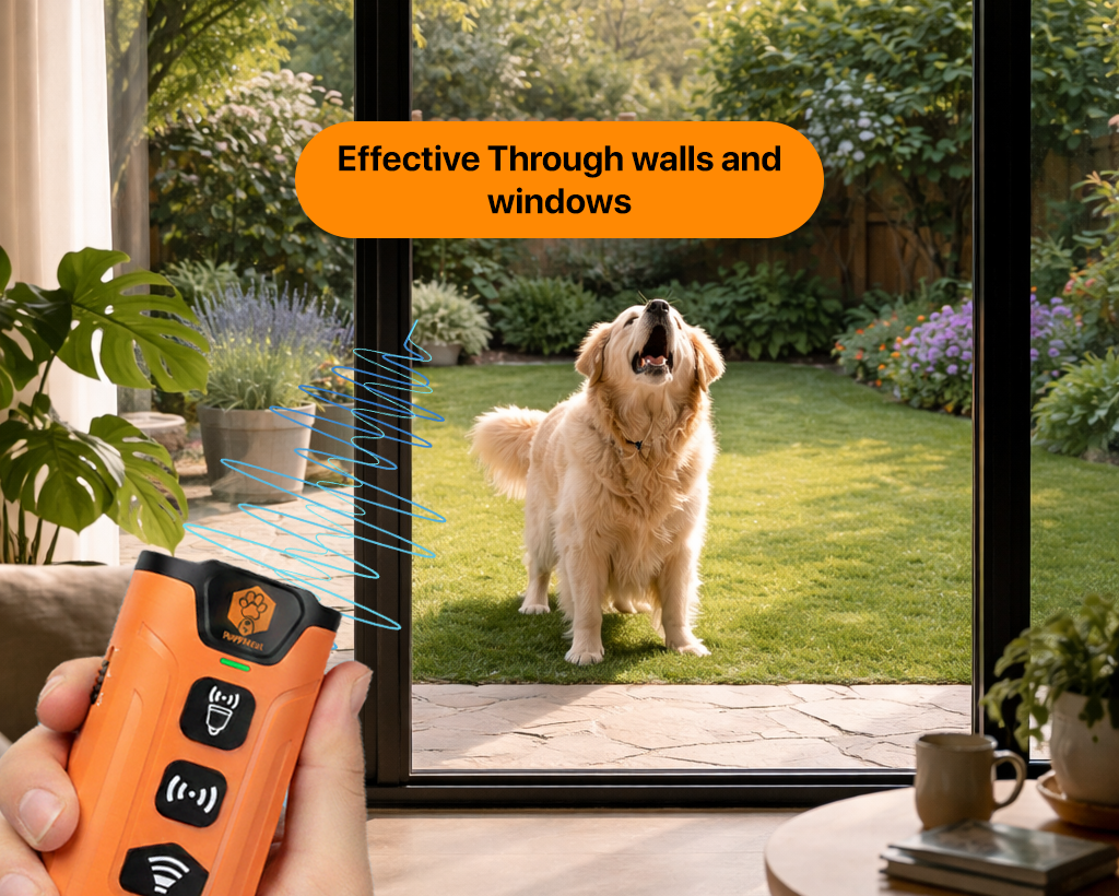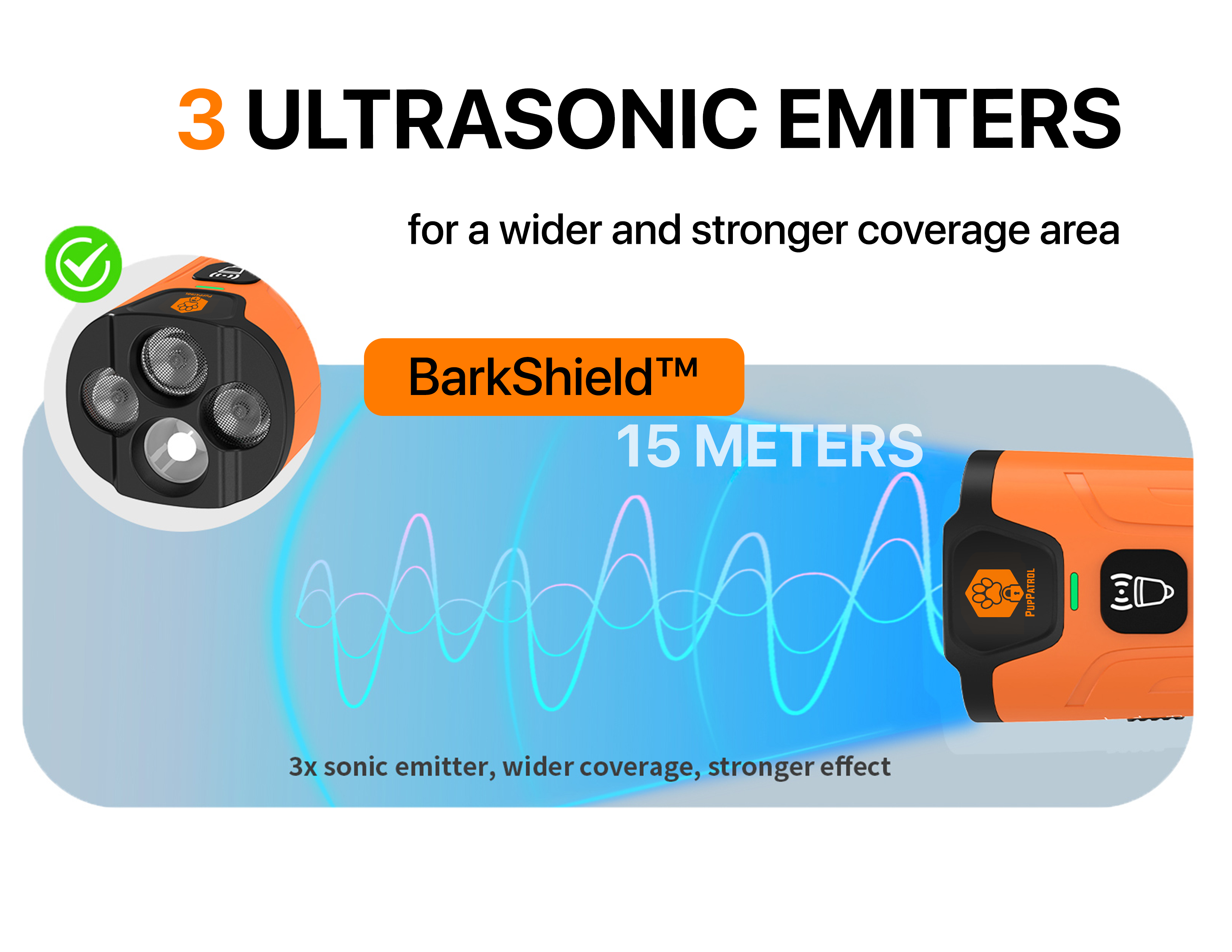 BarkShield⢠emits a high-frequency ultrasonic sound that grabs a dogâs attention and interrupts unwanted behaviour like barking, chasing, or approaching aggressively. The sound is unpleasant to dogs but safe, humane, and completely harmless.