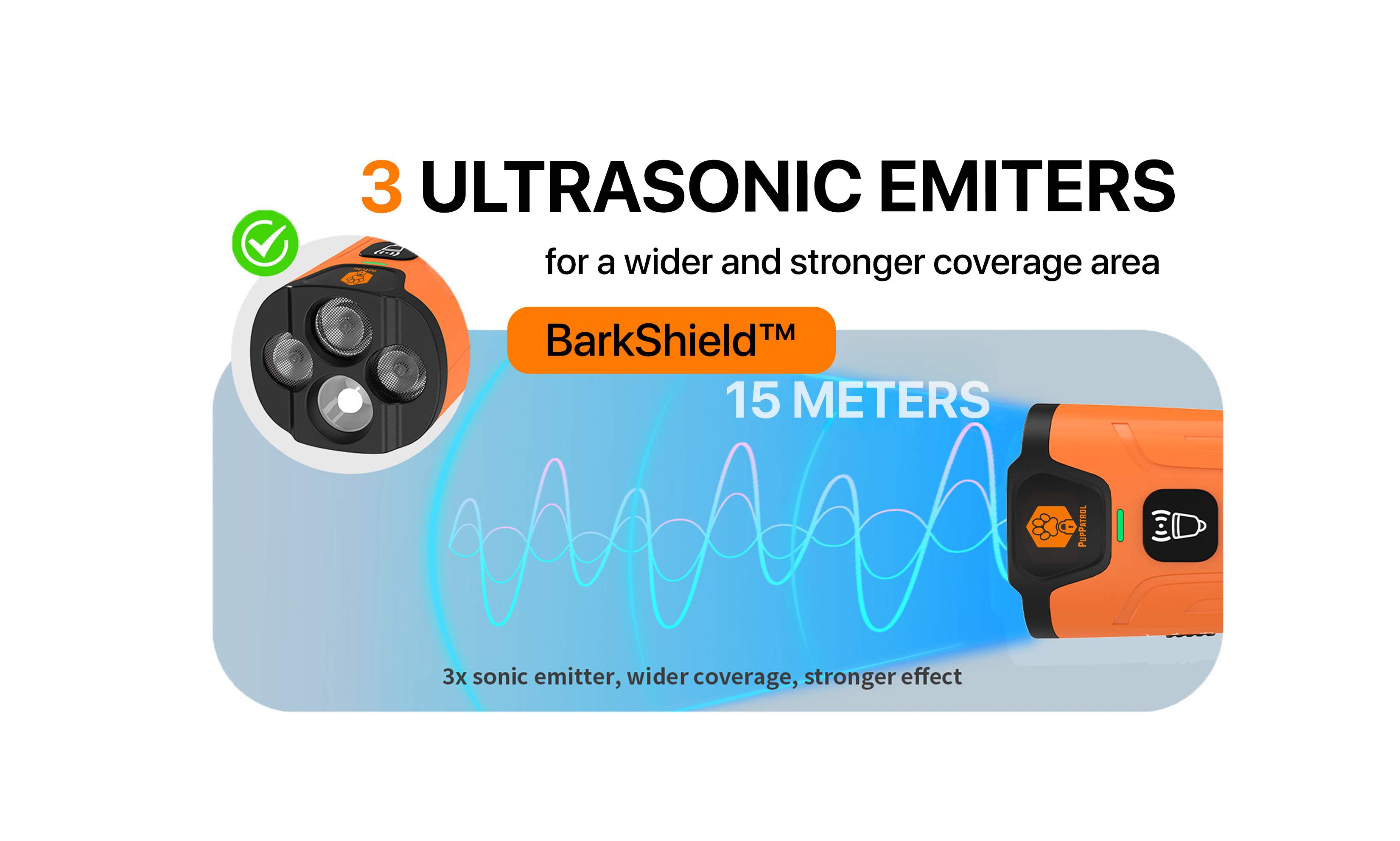 • When activated, BarkShield emits a high-frequency sound that dogs can hear but humans mostly cannot. This sound interrupts unwanted behavior and helps redirect your dog’s focus.